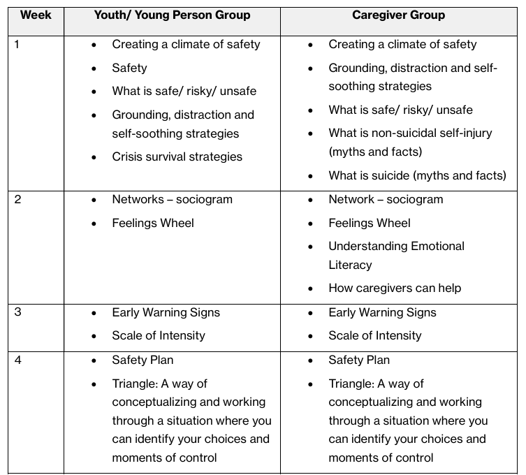 Each group is co-facilitated by Skills for Safer Living Facilitators: An Allied Health Professional